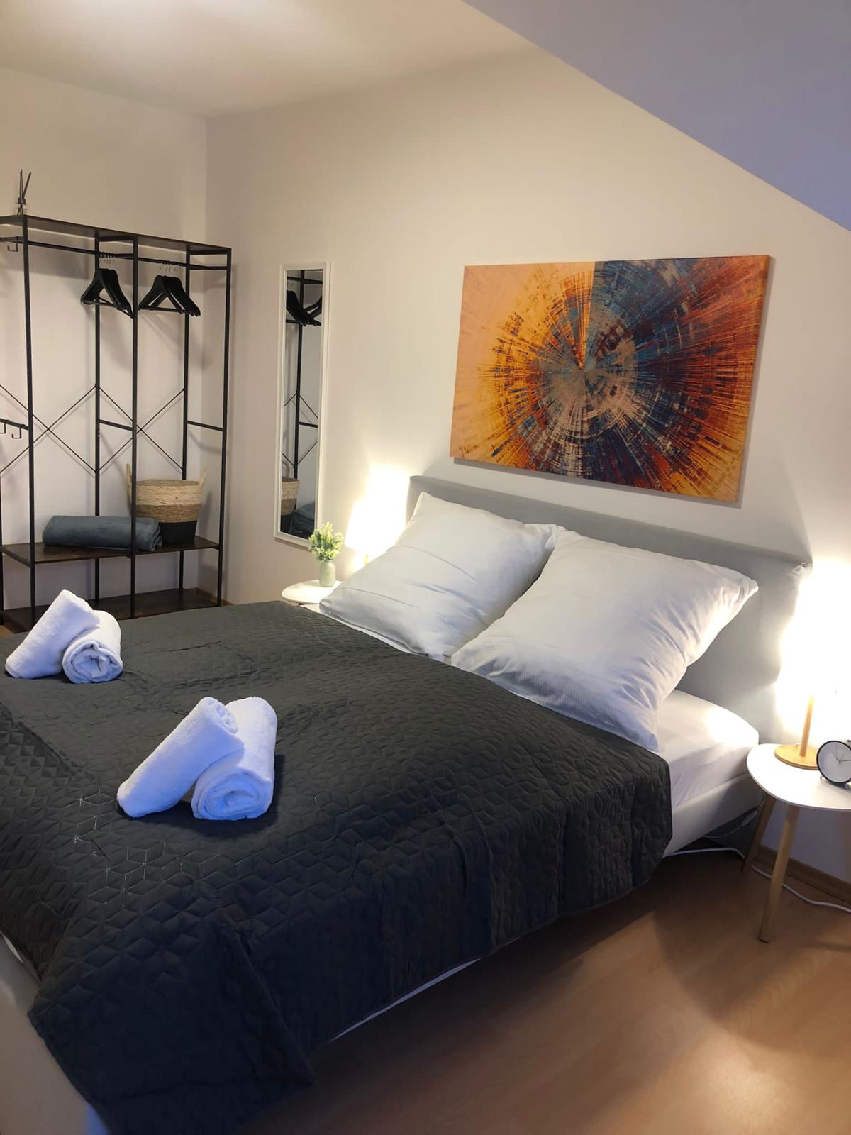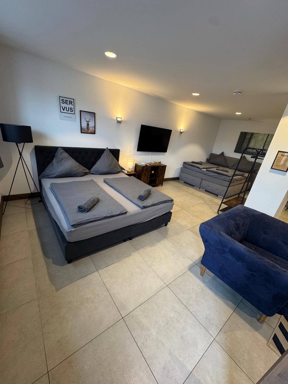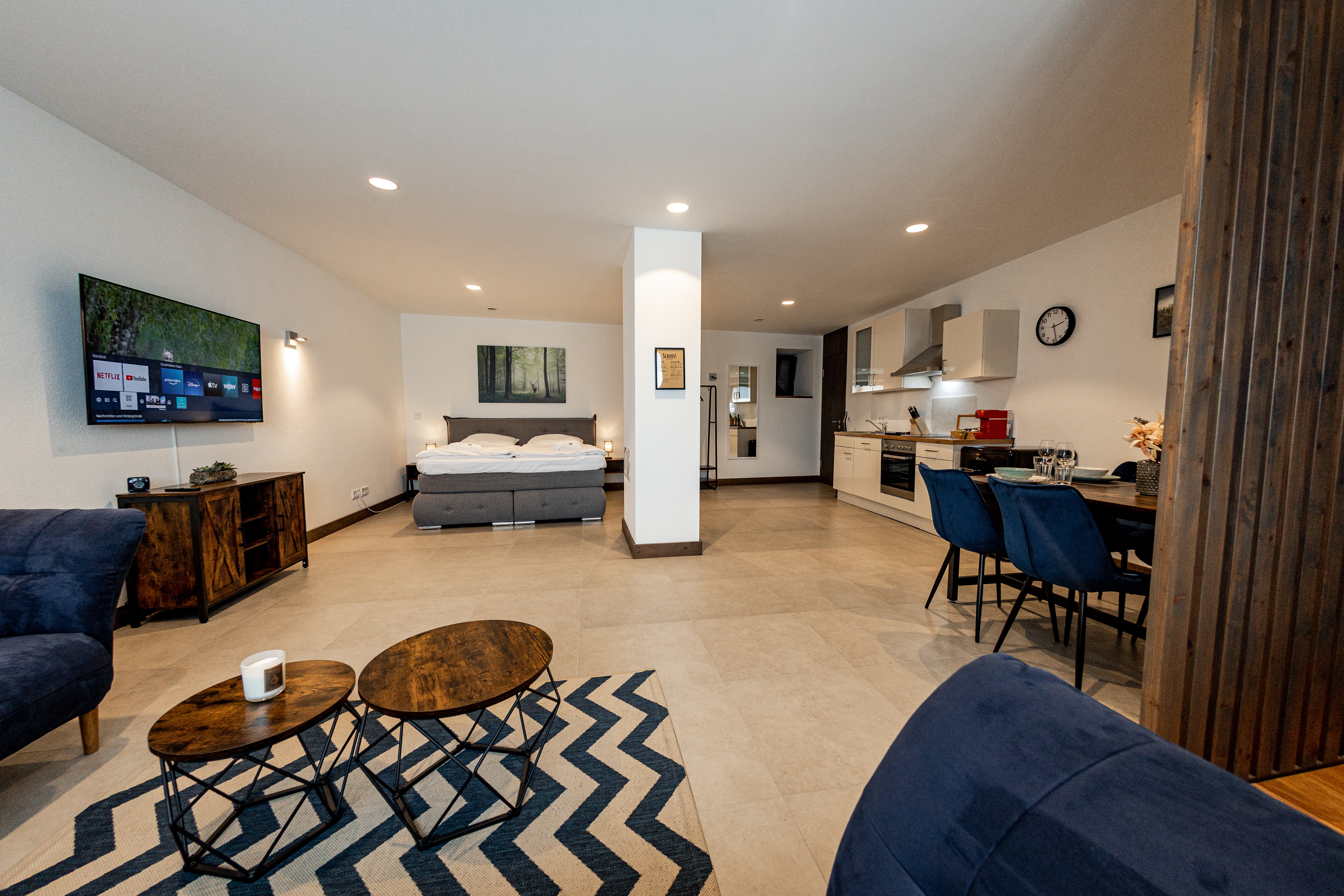 StudioDeluxe Double Studio, das für bis zu 4 Personen Platz bietet – ideal für Familien oder Gruppen! Das Stilvolle Zimmer verfügt über zwei komfortable Kingsize-Betten und ein eigenes Deluxe Badezimmer.WiFi TV Schreibtisch Haartrockner Handtücher 2 Einzelbetten Schlafsofa Kingsize-Bett Schrank€ 120 pro Übernachtung -