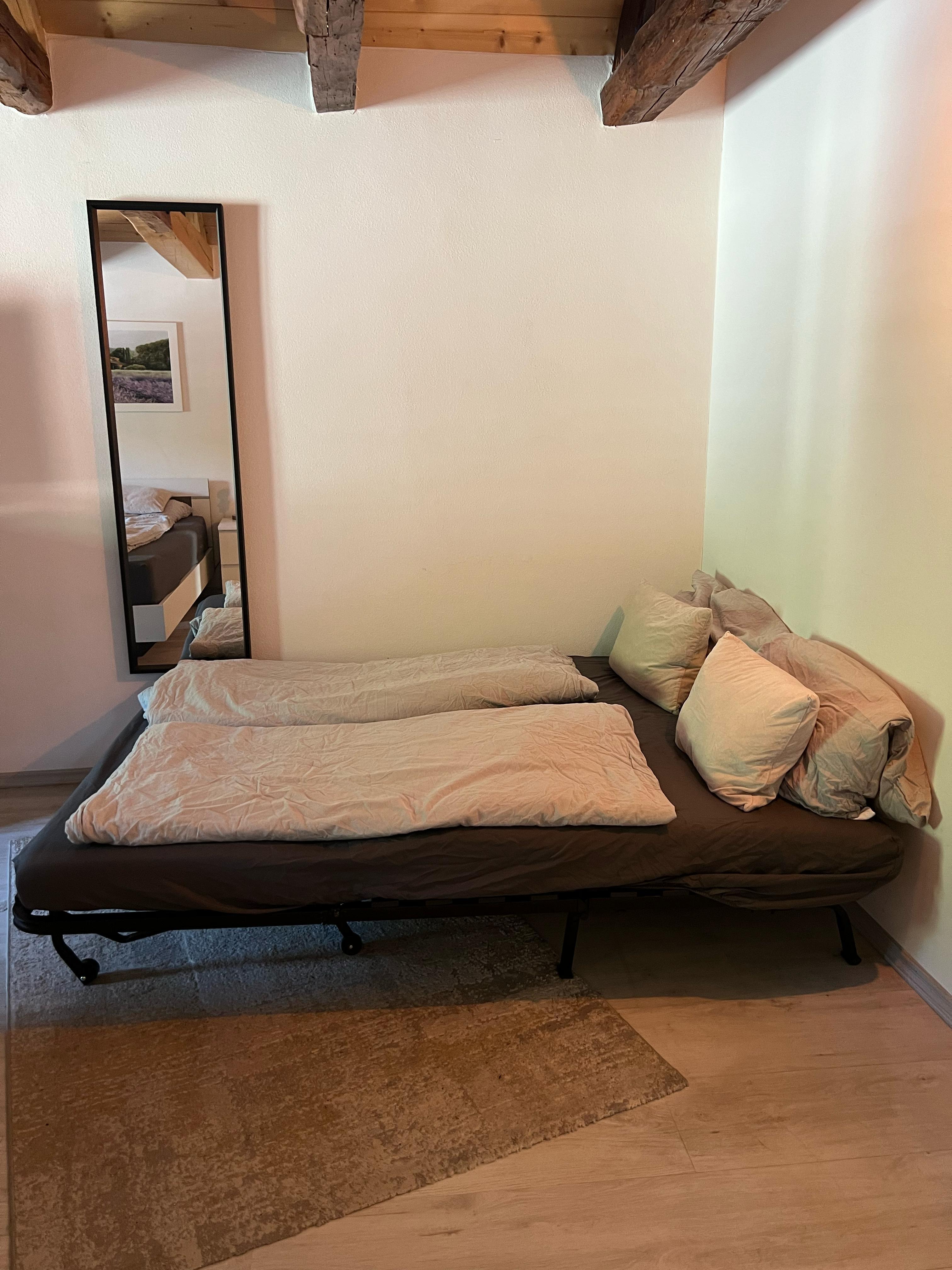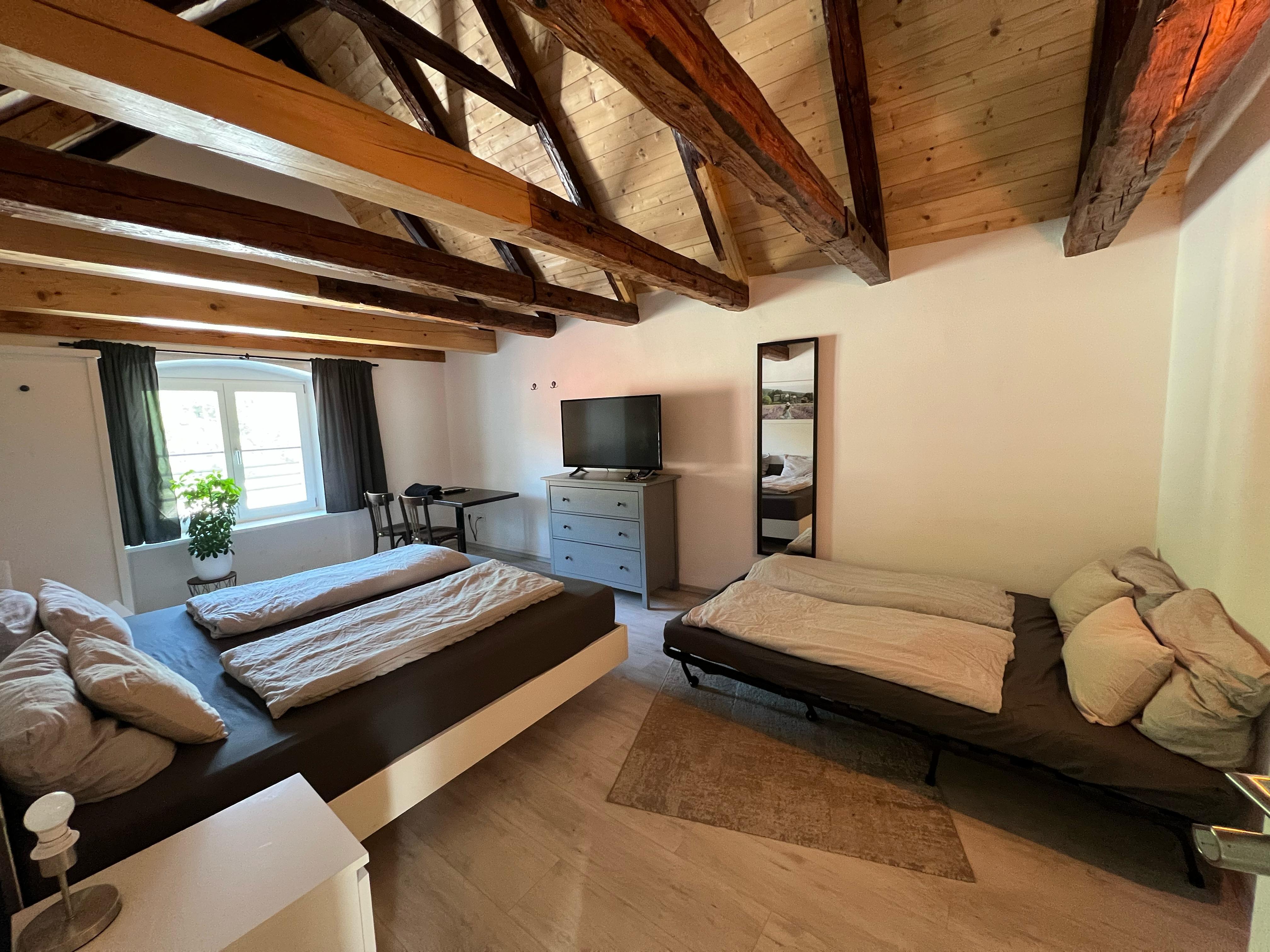 StudioDieses charmante Studio im Altbau bietet Platz für bis zu 5 Personen und ist ideal für Familien oder Gruppen.WiFi Terrasse TV Schreibtisch Gemeinschaftsbad Handtücher 2 Einzelbetten Schlafsofa Kingsize-Bett Kommode€ 57 pro Übernachtung -